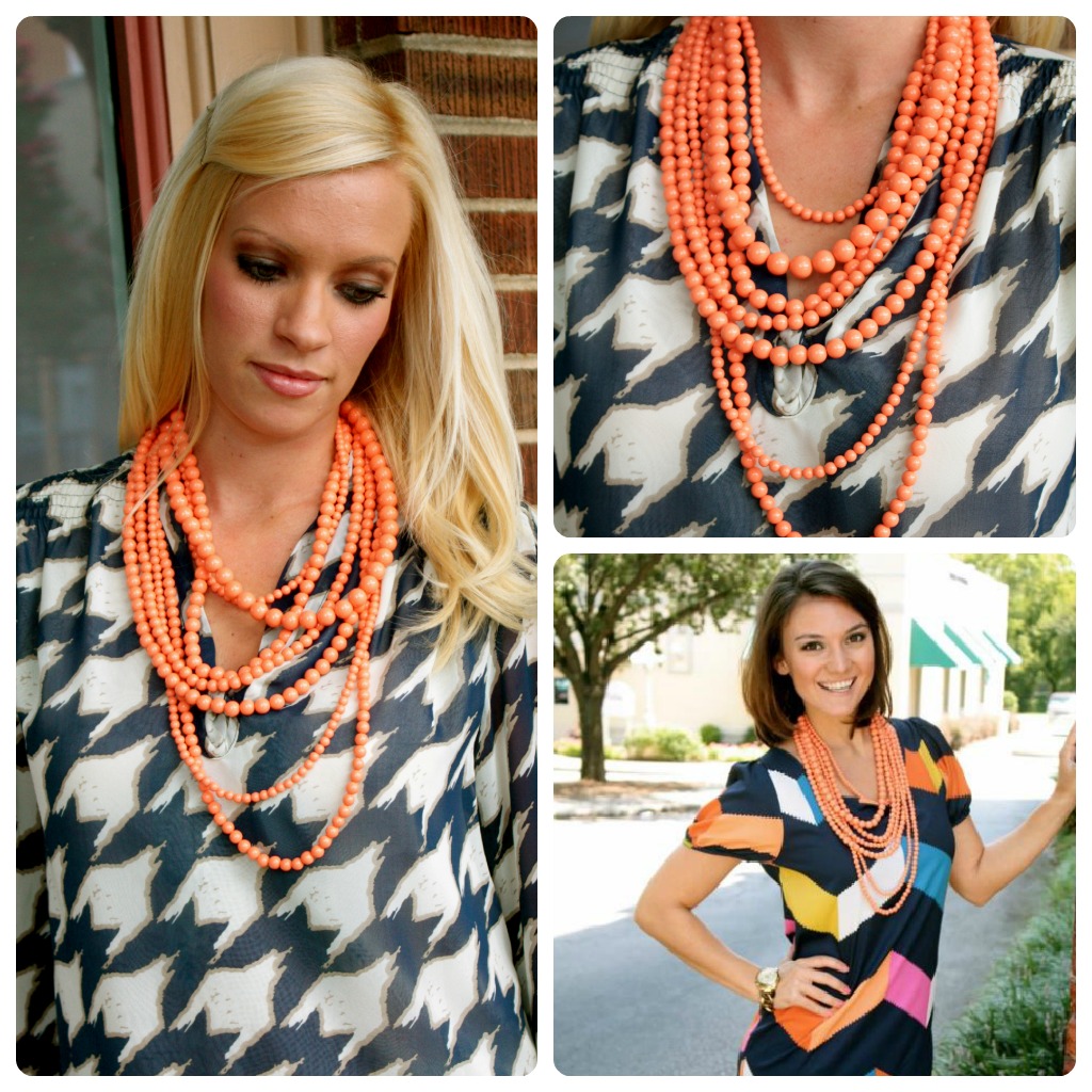 Statement necklaces are all the rage right now. They can be instant "outfit makers", per say. Our trendy 7 Strand Necklace in coral goes with so many colors and adds that "oomph" you need to truly turn heads. If you want to win it, head on over to our FACEBOOK PAGE now and "LIKE" the photo to enter. Winner will be announced tomorrow!