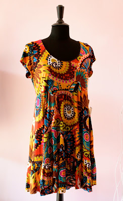 Everyone's "going bananas!" over this bright, fun, paisley printed short sleeve empire waist tiered ruffle dress. Perfect to wear now, then throw on a denim jacket and cowboy foots during cooler months. We can't get enough of this unique print! Hurry in - these are going FAST. What's not to love?