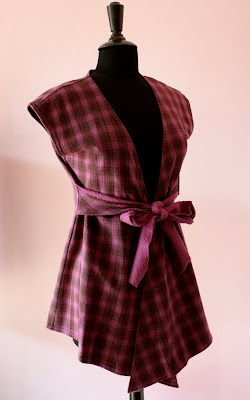 Bring on the plaid. Remember this tie waist wrap-style vest from Spring? For Fall, they've re-created it in a soft fleece chocolate/purple plaid that looks amazing over a chocolate turtleneck, skinnies, and chocolate riding boots.