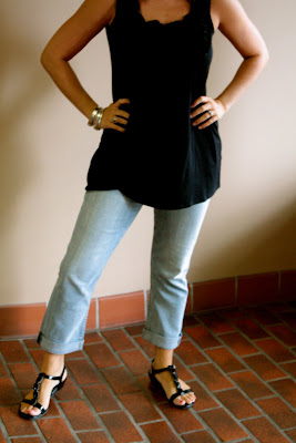 But to dress it up think strappy black stilettos, a fun sequined vest, and tank.