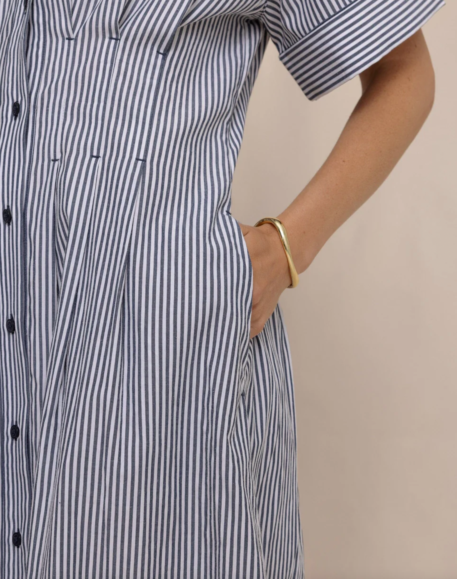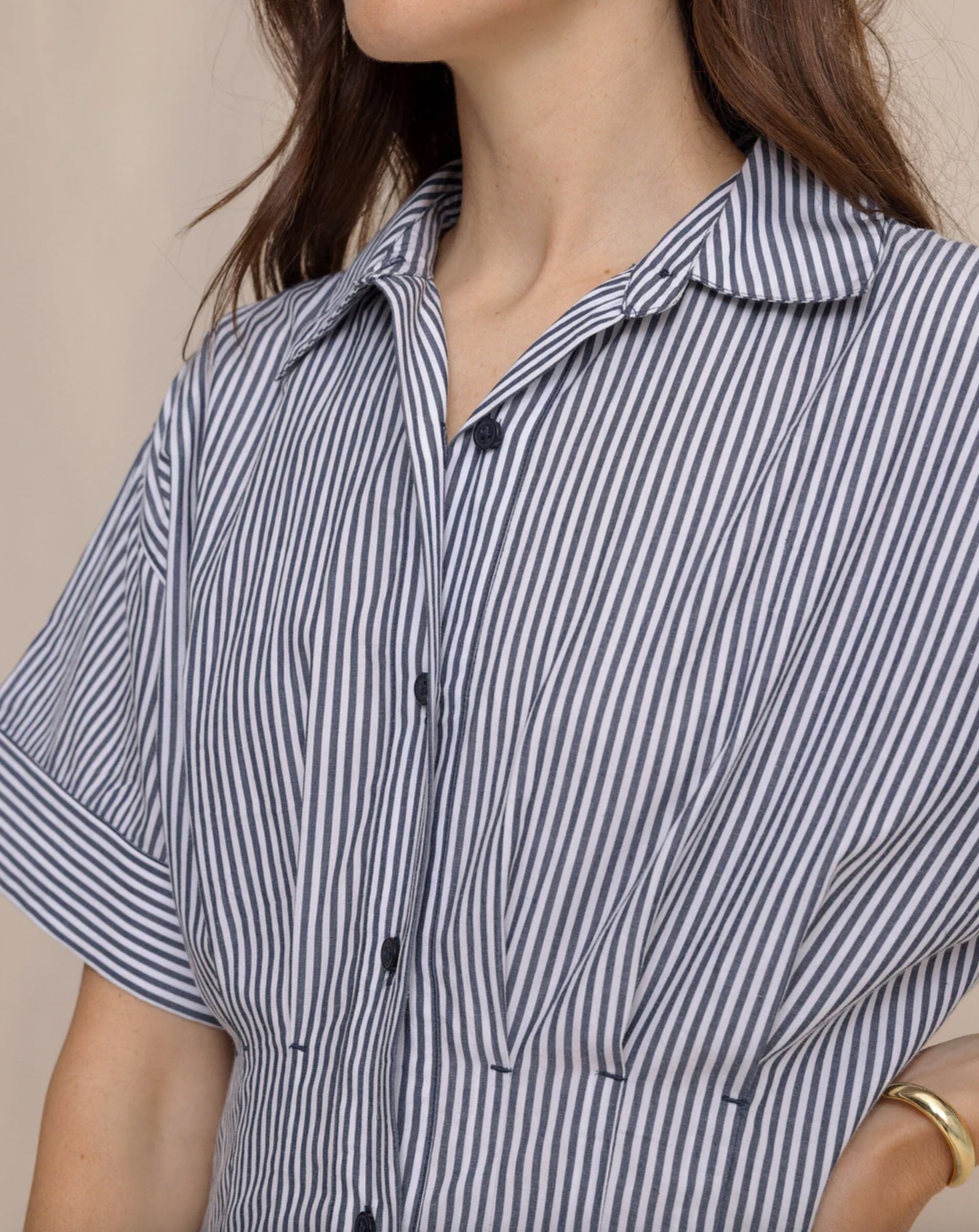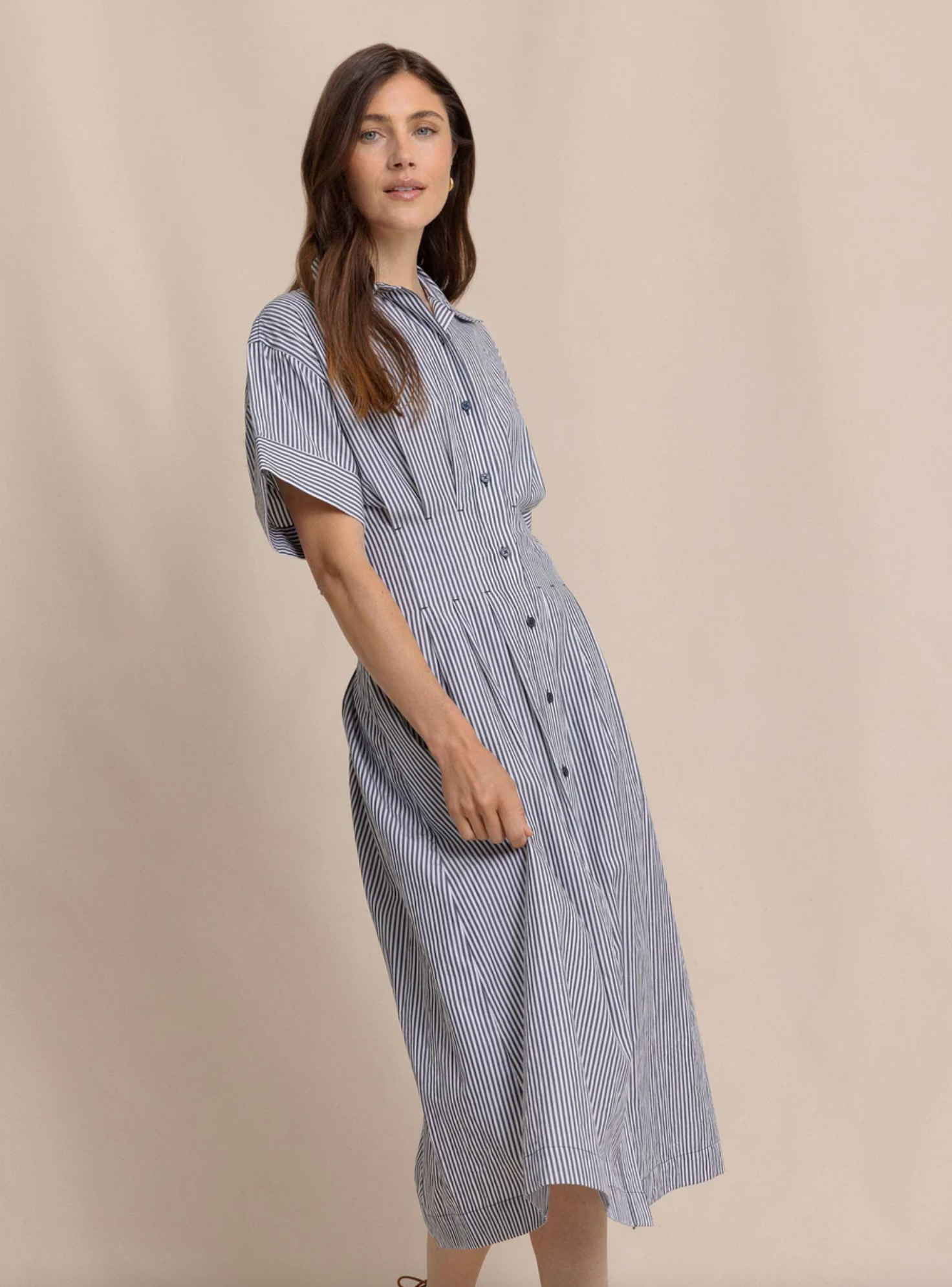 The Bobbie Tucked Waist Shirtdress is a timeless silhouette reimagined with thoughtful detail. Designed with blind tucks at the waist for a flattering shape, it features a collared neckline, full button placket, and drop shoulders for relaxed elegance. Finished with practical side pockets, this versatile dress moves seamlessly from casual days to polished evenings.