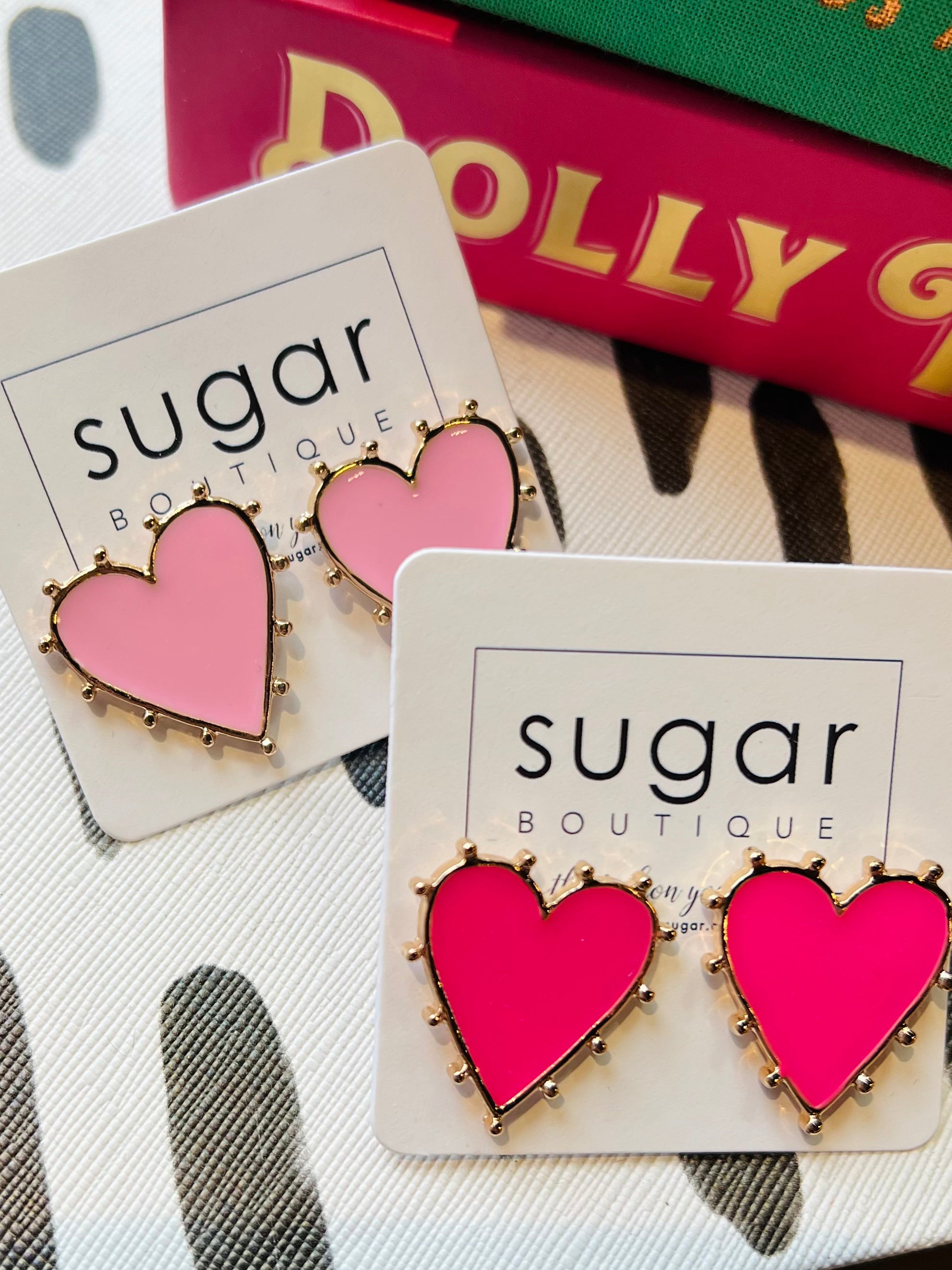 V Day or any day, these adorable pink heart dotted studs are lightweight, easy to wear and sure to jazz up any fun outfit this year!