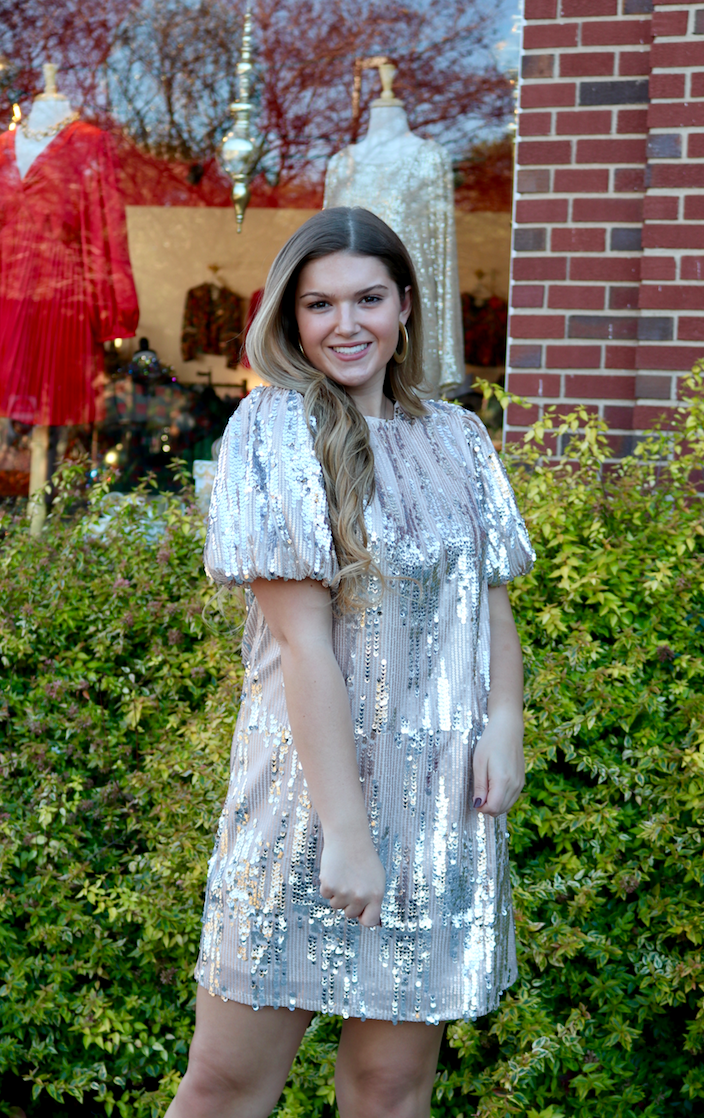 such a fabulous puff sleeve sequin dress that shines bright for Christmas, NYE and so much more...
