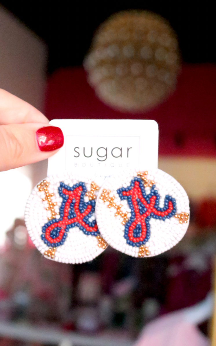 half dollar size lightweight seed bead earring that's the perfect gift for your Braves fans!
