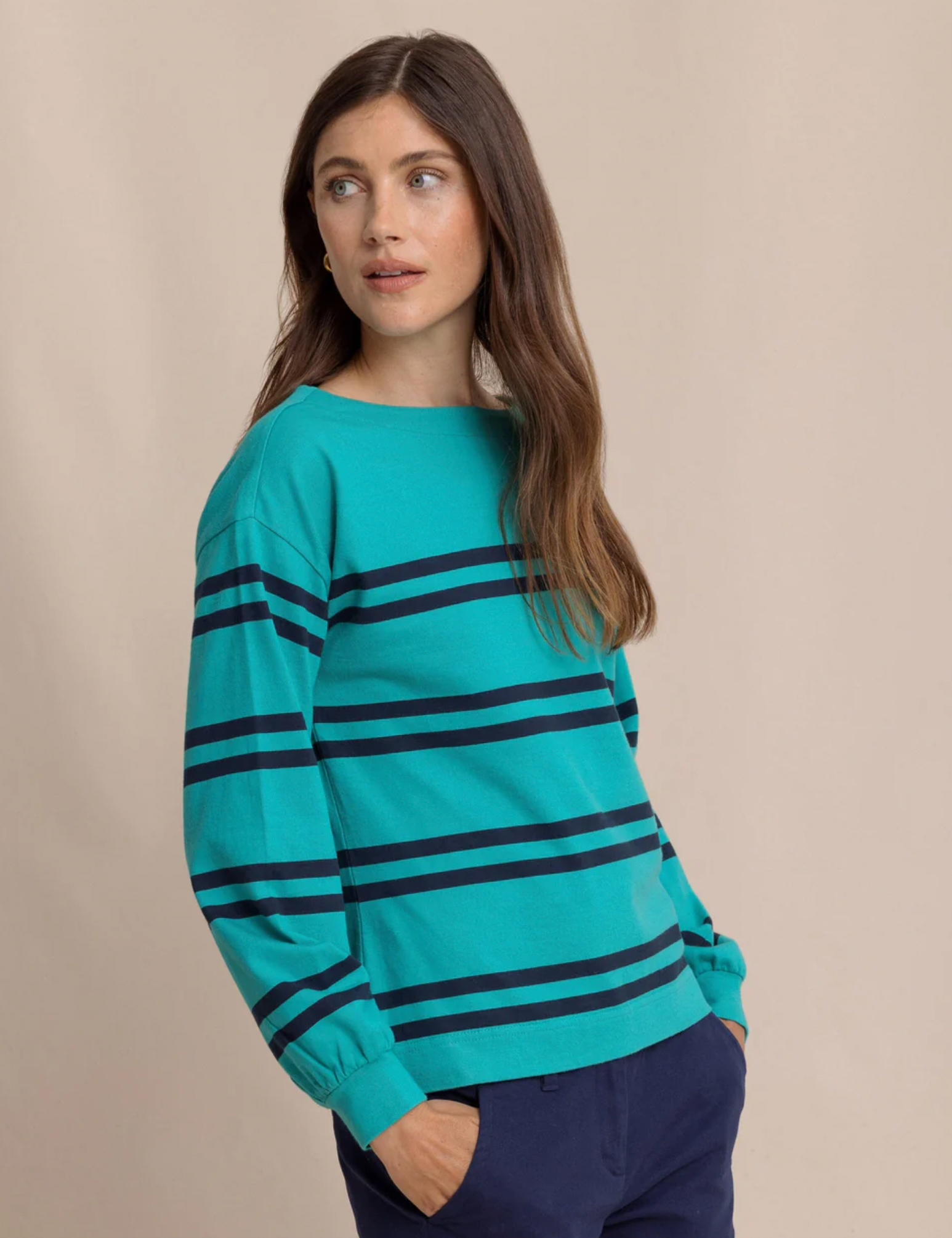 Classic with a coastal twist, the Zayla Stripe Top is an effortless staple made for everyday wear. Designed with a flattering boat neckline and timeless stripe pattern, this long sleeve knit offers an easy, relaxed fit with polished appeal. Soft, breathable, and endlessly versatile — it’s one of our bestselling styles for a reason.